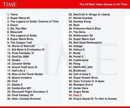 美国时代周刊评选出历史50佳游戏,其中魔兽世界位列第10。