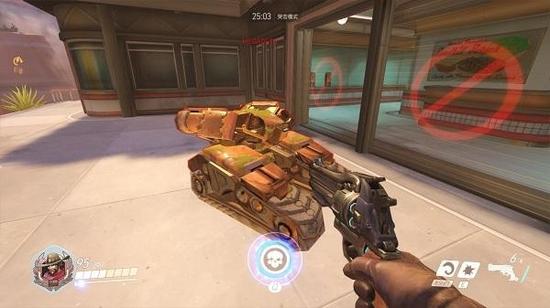 再说D.va,D.va的爆头模式也比较特殊,如图只能从正面窗户击中小D.va才算爆头,侧面由于机甲武器挡住了窗户玻璃无法爆头,背后也是看不到无法爆头。