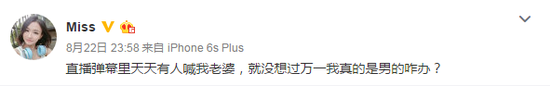 Miss:直播弹幕里天天有人喊我老婆,就没想过万一我真的是男的咋办?(咳咳,面对这个问题,小编表示,搞JI么,小胸弟!)