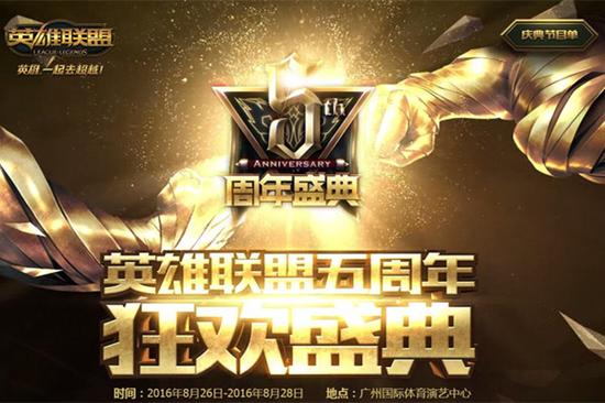 《英雄联盟》五周年庆狂欢盛典即将于8月26日-28日在广州国际体育演艺中心拉开帷幕。在持续三天的狂欢盛典中,玩家们不仅将欣赏到精彩激烈的赛事对抗,见证全球总决赛中国代表队名额决出,还有机会获得官方送出的全英雄全皮肤大奖,更将一睹十位明星齐聚的独特风采。而作为《英雄联盟》明星召唤师周杰伦,更将在五周年现场首度献唱《英雄联盟》中国品牌主题曲《英雄》。