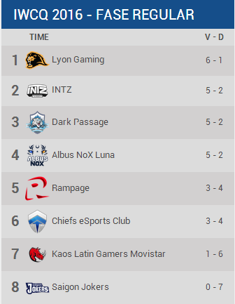 8月25日-9月5日外卡赛区资格赛在巴西圣保罗举行,八支队伍经过六天小组赛BO1交叉对战,于8月30日决出了积分前四的四支队伍晋级到半决赛,争取两张S6门票;另外四支队伍则遗憾告别S6世界赛。