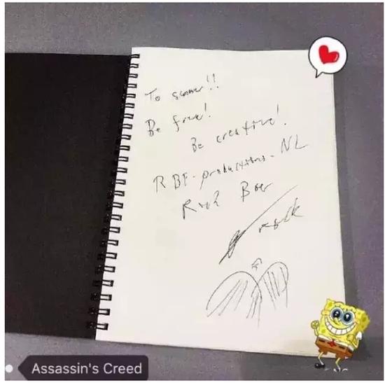 该句来自R叔给粉丝的签名留念,也让我们以此共勉,过一个有青春、有游戏、有自由、有创意的人生吧!