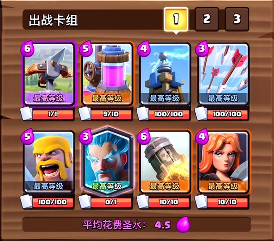 另外比较喜欢的一套是超级全明星!(即采集器、大皮卡、黑白王子、冰法、公主、矿工、小闪电!)乍一看觉得是土豪人傻钱多才拼出来的卡组,其实在当前天梯十分好用!对面下沉底胖子你就拍个大皮卡,对面就可以秒退了!双倍时间黑白王子疯狂冲锋也很爽hhhhhhhhhhh