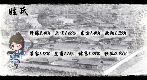 趣评:四大世家除去以单姓取名的燕门世家外,南宫、慕容、东方这三大世家均占据了复姓榜前列。从一个侧面彰显了它们在武林中举足轻重的地位。