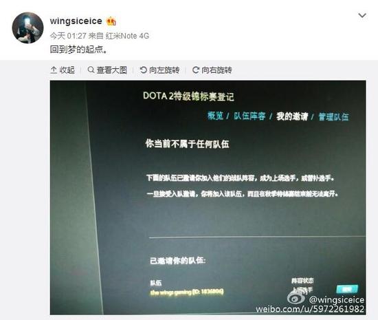 在二冰发了生日微博之后,还发了微博配了一张官网受邀加入Wings的图片,这样看来Wings战队就剩下shadow没有归队了。