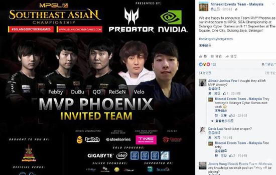 昨天,有消息爆出MVP仅存的三名选手,为了保障自己选择从MVP战队名单中离开,并表示他们仍在与俱乐部谈判,据MPGL赛事官方Facebook称很高兴能够邀请到MVP战队参加此次比赛。