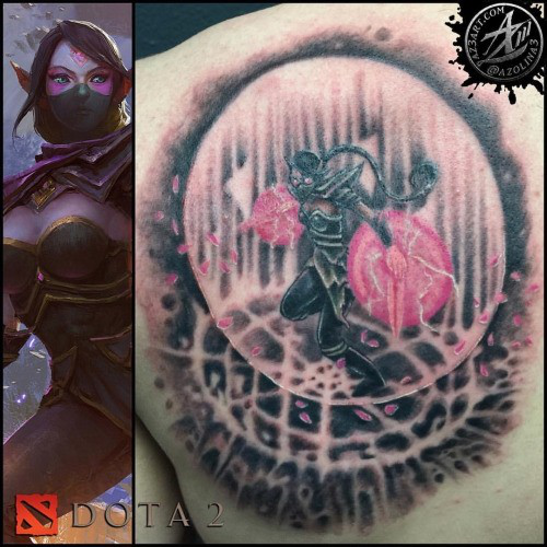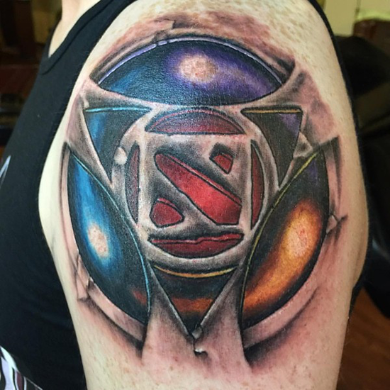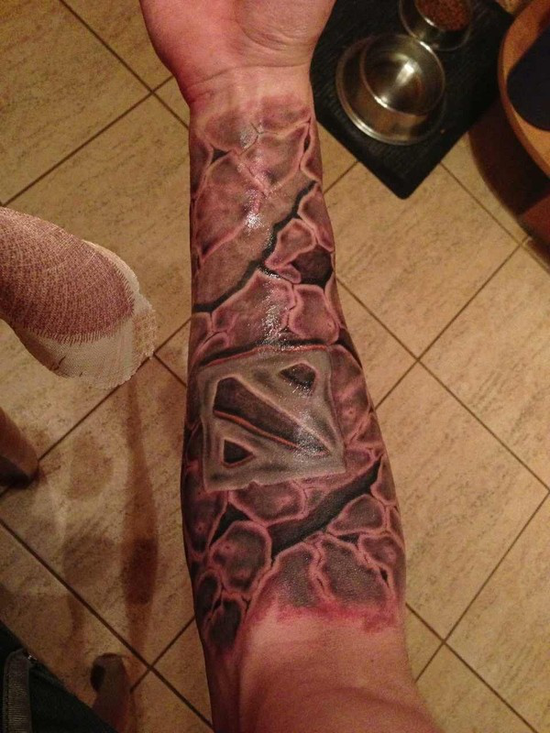 7. 当然,说到底,很多人是对整款游戏的喜爱,所以纹一个DOTA2标志在身上也不在少数: