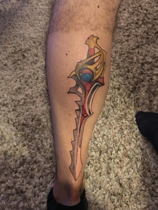 最近在微博上看到一位国外刀友在腿上纹了一把圣剑,刀友们反映不错,然后想起以前看到的各类DOTA2纹身,就写了一篇DOTA2纹身盘点,跟刀友们分享一下。