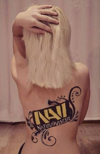 8. DOTA2不仅是一款游戏,还是一款电子竞技游戏,所以滋生出来的职业战队,他们的粉丝也会将战队的标志纹在身上: