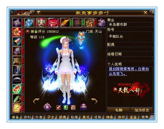 那么我们先来看曾经参加过争霸赛冠军团队中的两个号,原名“阿牛哥“,现名”多多“的丐帮、天山,现在的评分和状态。