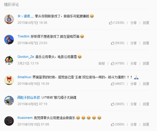 前面提到每个新英雄都会搭配专属MV,MV必然需要音乐,这些音乐也都是属于拳头的原创作品。从网易云音乐的英雄联盟歌单中可以发现,截止目前拳头已经发布了112首原创音乐,其中以没有歌词的纯音乐为主。这些音乐的质量不必多说,即使是非游戏玩家都可能会想要添加到收藏中,在歌曲下面的热评中频频能见到对于拳头音乐的褒奖。