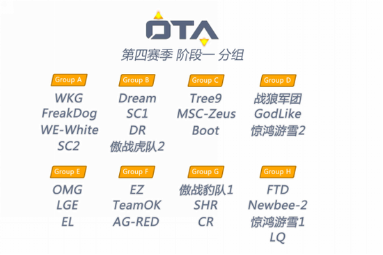 赛睿OTA守望者联盟战队赛第四赛季职业A级抽签分组结果: