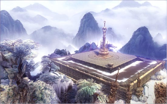 第二个地图是华山之巅。中间一个台子,台子上一个大柱子。当对面开爆发的时候可以卡在柱旁 边想必大家都知道。另外在这个图一定要保持整个团队的一致性,如果有人掉下台子,全体人员都要下台子,这样有紧急情况的时候可以救一下。另外在上台子的时 候可以用二段跳加小轻功上,省去一个扶摇。