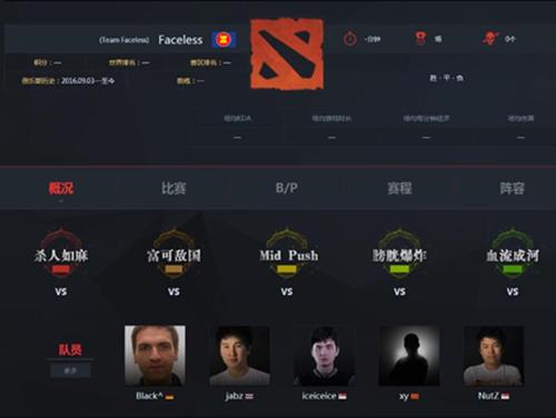 Team Faceless阵容:Black^、WarNutz、Iceiceice、Xy-、Jab-kanekl