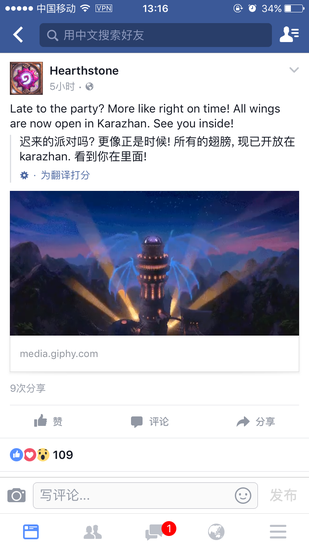 下面的评论也是一脸懵逼,不是卡拉赞已经结束了么?其中1条炉石官推还回复了,大概意思是说要让迟到的玩家知道卡拉赞并未结束。