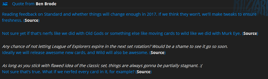 会像2016年那样,对一些经典系列单卡作出平衡性调整。会不会加入一些牌到经典里,我们还不知道,但BB之前曾有所打算。