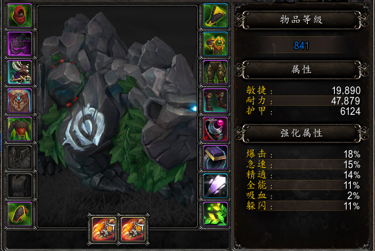 爆击:1%的爆击在统计意义上提供了1%的dps以及1%的闪躲,1%的闪躲就算他是1%的物理"免伤"吧。当然欧皇都是丝血闪躲保命,我这种非酋都是满血闪躲发呆。这个属性我个人不是很喜欢。