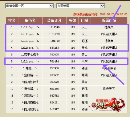 全国电信九天惊雷区,21和1,可以算得上是一个老区,区内百万评分的号已有3个,其中2个都是天山,在此之前他们原先的名字并不是这一串的字母,今日,却都改成相同名字,是不是要准备参加争霸赛呢?