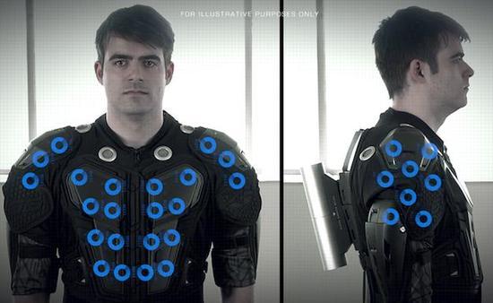 这是传统3D视频的一个诟病之处:只能模拟视觉而不能模拟身体触觉感受。现在,在科技的发展下,触觉套装(haptic suits)的出现让这个问题不复存在。这是个原本为电脑游戏开发的套件,能够模拟游戏中“推”、“拉”和击打的动作反馈。稍加改进,它就可以让虚拟性体 验更上一层楼。配合前文的虚拟现实,你能够触摸画面中的人体,同时也能感受到“被触摸”。只是想想就十分令人神往。
