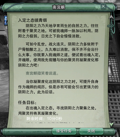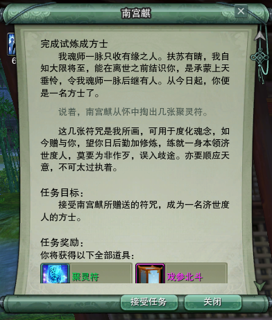 这个可以帮助我们寻找阴阳之力或者魂灵等,至此我们方士的一些简单的入门任务就结束了。接下来方士每一级都会有一系列的任务,后续我们会一一为大家制作。