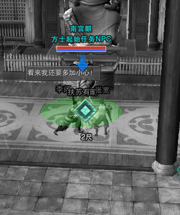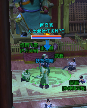首先官方把起始任务的NPC从洛阳·战乱挪到了扬州,所以我们想要开启方士身份,第一部就是要到扬州的如下位置找到南宫麒: