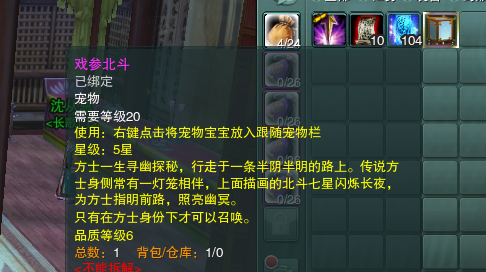 同时我们获得了方士专属的跟宠戏参北斗,只有在方士身份下才能够召唤的灯笼跟宠: