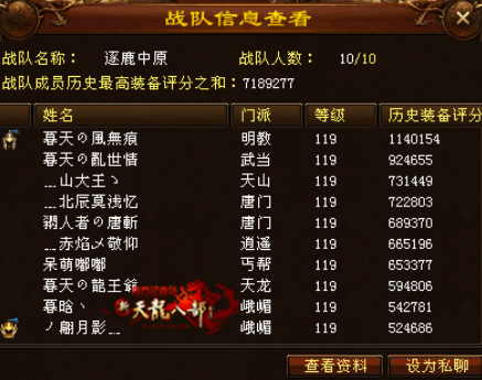 第三支战队没有对手从评分上来看,好似差距不大,那么在门派选择上队长依然决然的首选了双天山与峨眉,看来很多时候天山还是死神一般的存在呢,不过是否能如战队名字那样就让我们拭目以待吧。