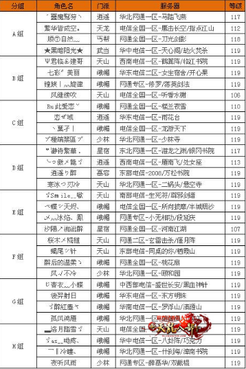 A组内,号令天下门派配置拥有群控群攻的慕容丐帮,单体爆发的明教,群辅逍遥,