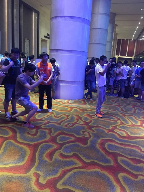 这次比赛有个这样有趣的插曲,会长和板娘在黄金赛表现并不是太好,可能是秀恩爱导致人品耗尽,“板狗夫妇”在比赛结束后准备离开现场的时候,竟被被场外炉友活捉!