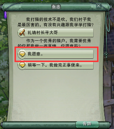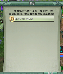 1、正常做主线到张忠,选择帮张忠打猎。