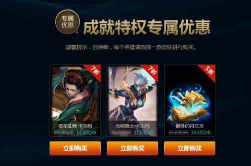 A. 该英雄部分皮肤的折扣购买(仅可购买1个)