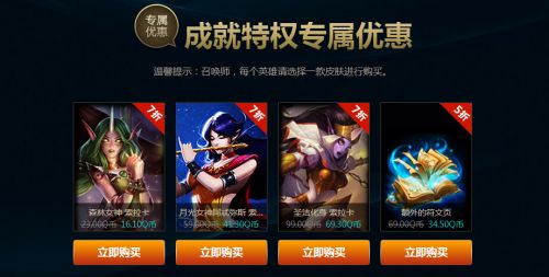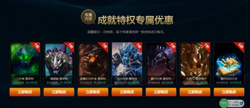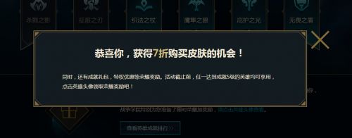 小编就为玩家们简单的截图几张小编的折扣皮肤,不过实话说回来了,英雄成就等级那么高,小编基本上都有这些英雄的皮肤了,毕竟天天玩的,早就买买买了,嘻嘻···