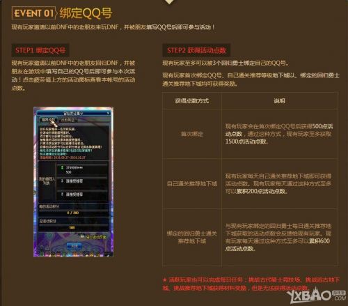 回归玩家在首次登录时会出现提示框,输入邀请你回归DNF朋友的QQ号即可顺利参与活动,推荐后回归玩家&新手玩家&现有玩家都可以通过通关推荐地下城获得点数兑换奖励