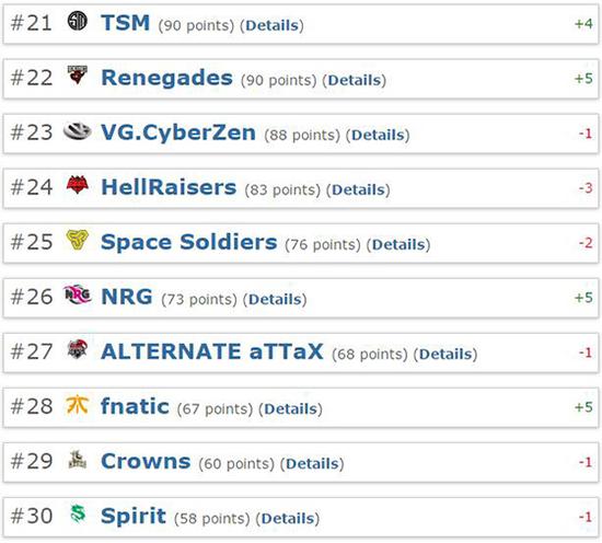 在排名前30位的战队中,还有中国VG.C,他们排在第23位。特别要值得一提的是,VG.C在SL-I线下总决赛中曾经击败过现世界排名第二的VP战队。