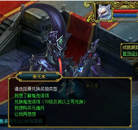 我们来到黑无常这里,会看到有这么一条选项——鬼物兑换。