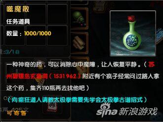 收集到足够的“噬魔散”后,便可依照道具说明前往隐世高人“癫狂道人”所在之地一求所学了!