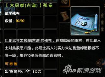 仅有“入门”和“进阶”书页,只能将所习古谱修至6层。随着九阴志的逐步开放,仅有6层的古谱还谈不上“金字塔尖”。此时,大侠们若想精进几分,不难打听到江湖中有一位精通太极拳古谱的隐世高人。大侠们若是诚心修习,那就带上他最喜欢的“噬魔散”去碰碰运气吧!