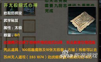 参悟“心得”中的要领之后,大侠们只需前往苏州“无人道观”附近,找到悉心教导自己的隐世高人。与之对话,便可通过一定的道具换取真正傲视天下的古谱秘技啦!