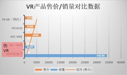 通过淘宝的VR近期销售数据我们可以看到,像VR一体机、VR盒子类似的设备占到总销量的70%以上。而此类VR一体机和VR盒子的产品多为像暴风魔镜、小宅魔镜、UCC VR这样的产品为主。此类设备售价仅为一些高端设备的几十分之一。在内容方面,国内的一些VR设备虽然没有一些独占内容,但同样的,像HTC Vive、Oculus Rift CV1在内容上也不占有优势。换言“伪VR”在内容质量上大打折扣,但在内容数量上却有所弥补。由此可见,现今VR市场正面临着“伪VR”一边倒的现状。