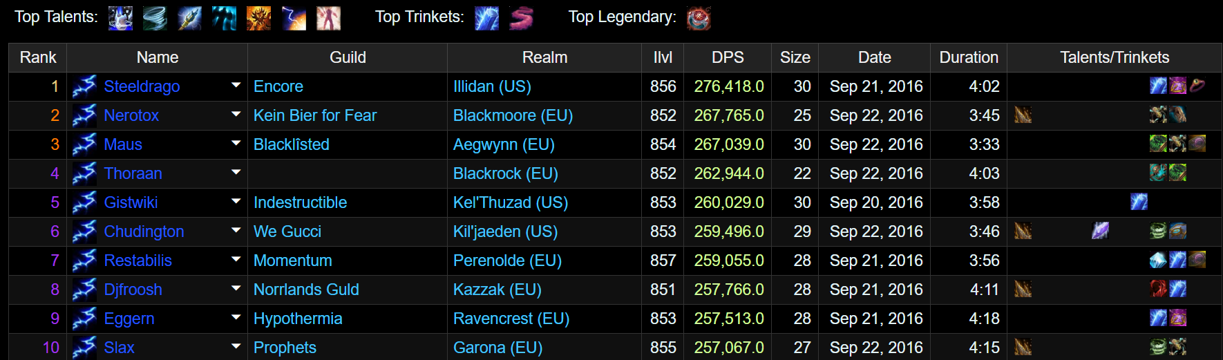 NO.4, 欧服 Thoraan 装等852,暴击33.77%,急速24.62%,精通32.21%, 全能 0。