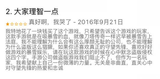 对这款游戏,有一个玩家的评论非常中肯