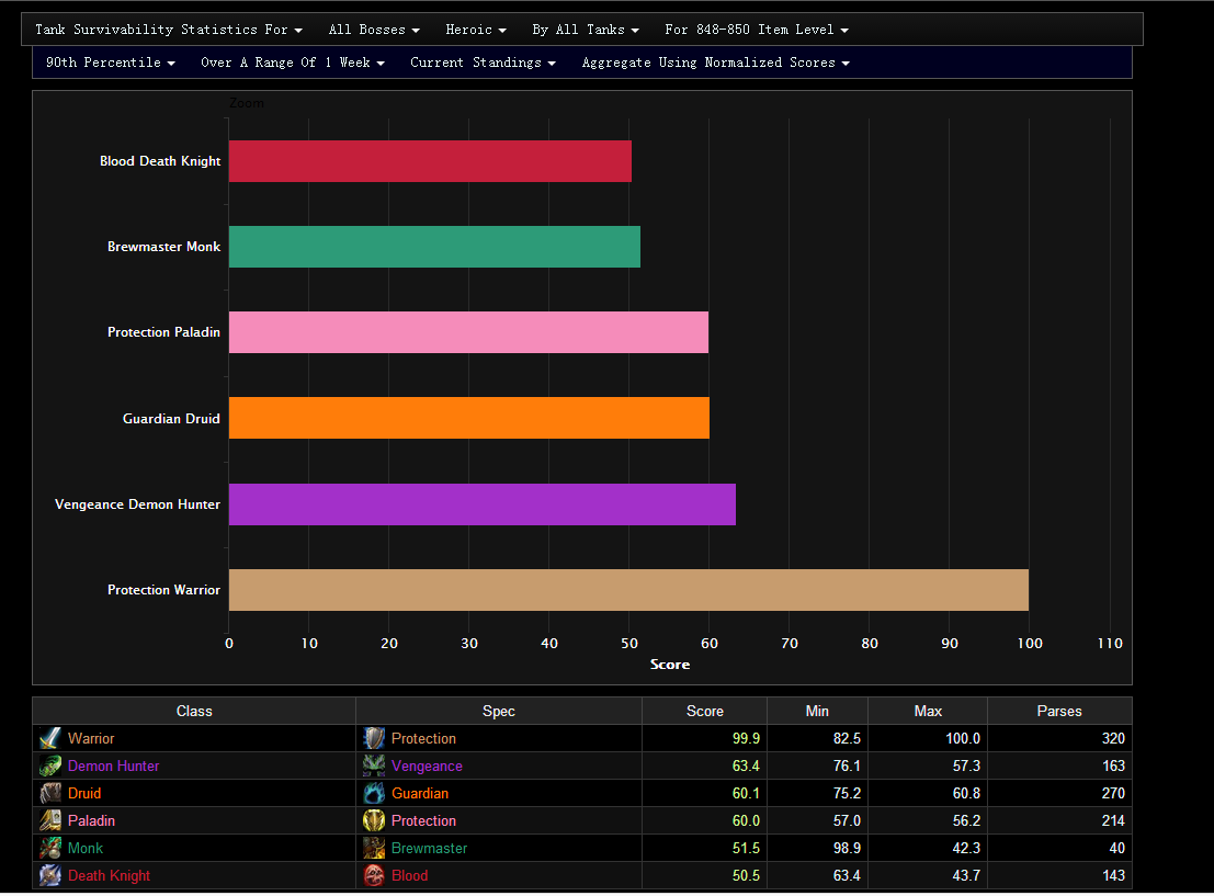 这个指数比较好的避免了一些常见的坦克生存数据带来的误导。例如,坦克承受伤害不能反映坦克抗怪时间、不同职业招闪不同以及自疗能力不同等。参数的计算考虑了包括承受伤害、招闪量、自疗量、抗怪时间、团队坦克数量等因素,可以理解为代表了坦克除去自疗之外仍需要的外界治疗量指数。