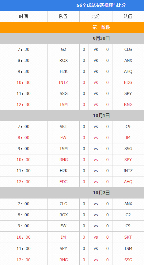 三、英雄联盟S6全球总决赛赛程