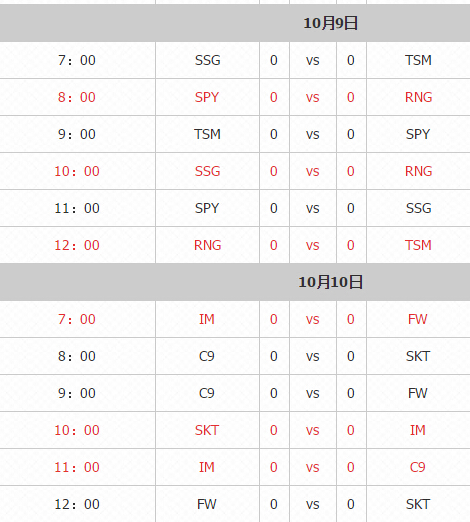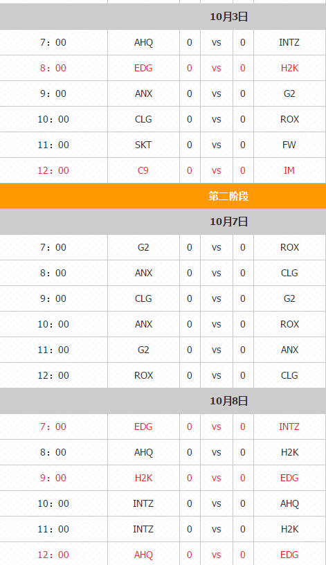 小组赛第二轮 10月7日-10月10日