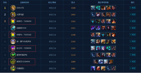网通二区德玛西亚,也是玩家人数最多的大区之一。玩家排行榜同样被工作室账号霸占。