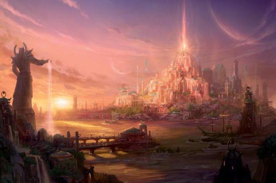 (图4,上层精灵最辉煌的遗产——奎尔萨拉斯)与银月城相比,矮人的家园铁炉堡从不以瑰丽著称。这座易守难攻的坚固城池更像是一座要塞,矮人们挖空了一整座山才建造出这座山腹中的城市。城中心的大锻炉日夜不歇得融化着铁水,围绕锻炉的矮人工匠们则为他们的联盟盟友打造着一把把锋利的武器。