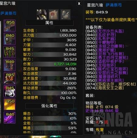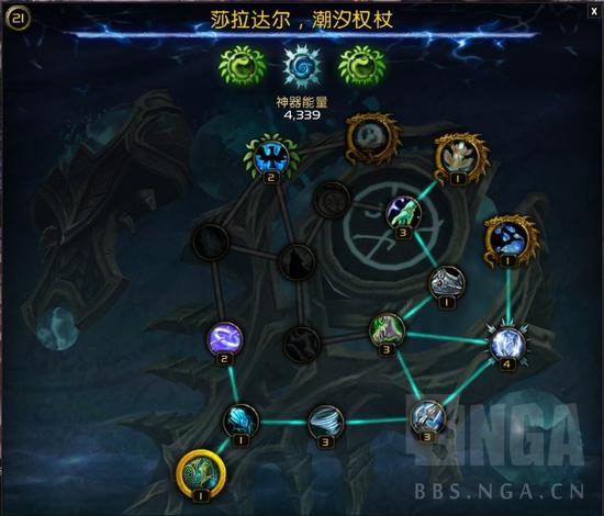 最后放上一张神器图片。和大神们点法不同之处在于我认为治疗量主要还是来自于链子,所以很喜欢中间加治疗链暴击的特质,顺便也点出了奶潮的大特质。经简单的计算之后中路大特质在理想情况下对于奶潮的加成在23%左右,以供参考。