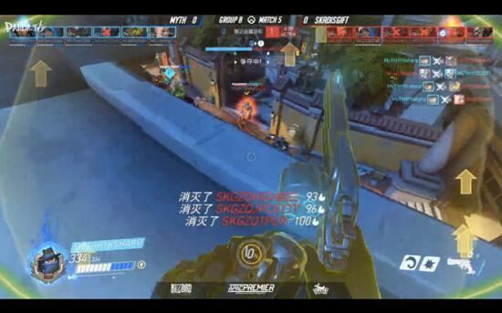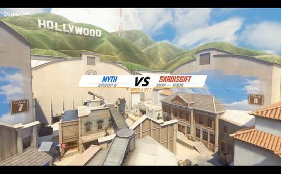 第一场的地图是多拉多。进攻方SKG战队选择了卢西奥、毛妹、半藏、安娜、禅雅塔、大锤。防守方MYTH战队选择了卢西奥、毛妹、安娜、路霸、大锤和麦克雷。SKG在毛妹、路霸和被安娜强化的大锤配合下经过几番进攻,成功将车推到A点。这边MYTH麦克雷午时已到也是成功三杀并且紧接着带走对方大锤,为防守争取一波时间。SKG半藏在开大成功双杀之后就换上了麦克雷。MYTH这边防守做的是相当好,连续抵住了几番SKG的进攻。尤其是路霸钩住对方卢西奥后又开大双杀,麦克雷也在二楼进行一个疯狂输出,最终MYTH成功守住B点。