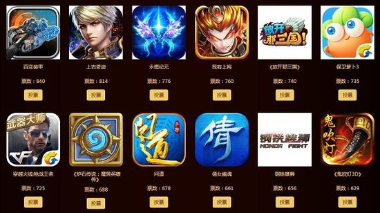 分别通过游戏产品影响力、下载和收入规模、游戏产品数量和质量、受欢迎程度等角度进行投票,最高得分者入围获选。