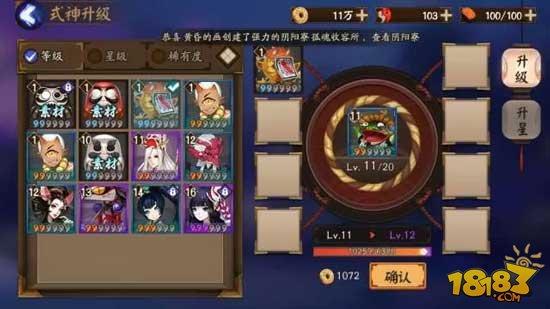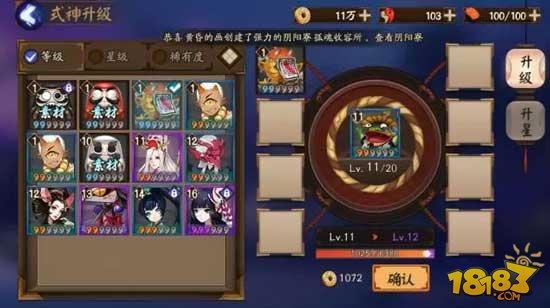 操作步骤:是指在式神界面,点击“育成”后,将你不需要的式神当做材料,提供经验给其他升级